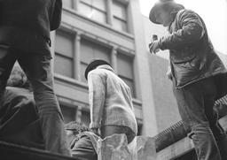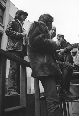 Au cours de l’automne 1972, Gordon Matta-Clark (1943-1978) construit, dans un container, Dumpster Duplex, seconde itération d’Open House – dont la reconstitution fait partie de la collection du MAMCO. Une photographie montre que le container est déposé devant le 112 Greene Street, l’un des mythiques espaces d’exposition alternatif de SoHo. L’aménagement intérieur du container diffère essentiellement de la première version parce qu’il est doté d’un étage : un escalier permet d’accéder à une plateforme sur laquelle a été fixé un brasero qui fait office de barbecue, comme le montrent des photographies d’Andy Grunberg présentées ici.