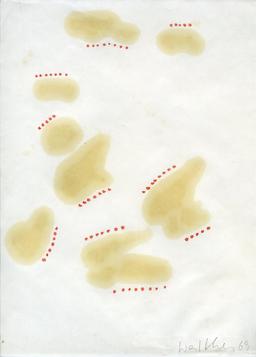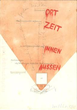 The Wortbilder is a series of 64 drawings made by Franz Erhard Walther (1939, Germany) while he was attending the Städelschule [art academy] in Frankfurt in 1957–1958. The artist claims that he made this work to avoid having to take a calligraphy class. However, while these gouaches on board clearly show technical mastery of the graphic features, the inscriptions they bear suggest associations of ideas, and already hint at concerns with the foundations of his work as an artist. These early works on paper were presented on the fourth floor, as a complete set for the first time. They were set in a dialogue with three subsequent canvas sculptures that played on the interaction with the body and space. The exhibition aimed to explore not only the value of representation, but also the ability of a language, either verbal or corporeal, to construct space.