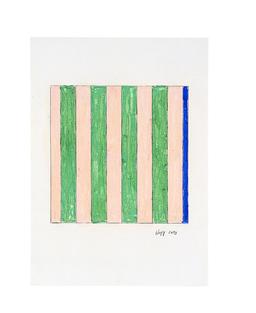 In 1961, Marcia Hafif (1929–2018) left California for Rome, where she hoped to study the colors and textures of Italian Renaissance painting. She painted more than 210 works in Rome, over a period of eight years. The exhibition contained roughly thirty of these, with as many drawings, over four areas of the third floor. Hafif’s painting is based on geometric regularity, anonymous execution, the contrast between two colors rather than between light and shadow, and a rejection of illusionism. In 1964, her palette softened toward more candy-color tones, which some also associated with motherhood. Then she began to free the central space of her paintings, surrounding her blank canvas with two colors. Color was no longer applied to the canvas, it permeated it. Her later paintings have a unique form and counter-form. Her motifs resemble figurative abstractions. Forms veer over to the limits of the canvas, which leans toward the monochrome.