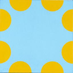 Along the walls of two rooms on the first floor, a series of pastels from Marcia Hafif’s (1929–2018) Italian Paintings (1961–1969) peered across at the photographic works the artist developed while studying at UC Irvine (1969–1971) after returning from Rome. The twelve photographs that make up the series U.C.I. Gallery, Irvine, CA 1971 were her degree project, consisting of images taken in the gallery where the project was to be exhibited. Rather than bringing foreign elements into the gallery, each print reproduced a detail of the exhibition space itself. Hafif’s framing of the details belies a nostalgia for the forms she worked with in Rome in a series of drawings and collages that experiment with patterns not seen in her paintings. When she returned to her hometown of Pomona, she discovered that the house her father had built was gone. This prompted her to produce the series Pomona Houses. Crisscrossing the city, Hafif tracked down the remnants of her childhood, creating nostalgic portraits of houses built between 1920 and 1930. The result was an entire native architectural vocabulary, shaped by applying the same formal principles that she uses in her painting practice.