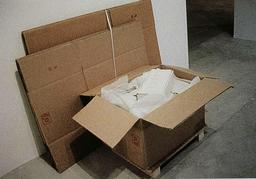 In December 1987, Philippe Thomas (1951–1995) opened his first agency in the Cable Gallery, New York, called readymades belong to everyone®. A French branch of this public relations agency soon followed in 1988 in Paris. The most immediate result was that the artist, as well as his name, disappeared as the author of the works, to be replaced by an impersonal title. The final exhibition of the agency took place at MAMCO in 1994, and the museum has preserved its components, i.e. the boxes and packing materials for the agency’s archives, as well as some of the images that punctuated its art career. Thomas died within months of opening the exhibition, and so the agency was definitively closed. By donating this work, he was bringing his undertaking to an end, both masterfully and modestly. His goal was for art to record the disappearance of the author.