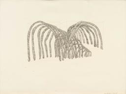 At her SoHo loft in New York City, where artists like Lawrence Weiner, Sol LeWitt, Agnes Martin, Carl Andre, and Yvonne Rainer met, Rosemarie Castoro (1939–2015) developed a distinctive, unclassifiable artistic approach. She took part in Distillation, for example, an exhibition organized in 1966 by Eugene Goossen, the high priest of an American school of painting freed from external influence. Together with Christine Kozlov and Adrian Piper, Castoro was one of the women artists featured in Ursula Meyer’s anthology of Conceptual art in the late 1960s. She also took part in Lucy Lipard’s famous Numbers exhibition of the same period. Lippard included Castoro in her own anthology of Conceptual art, with a work in situ of which MAMCO holds a photograph: the space of the Paula Cooper Gallery marked by a fault-line traced in half-inch wide adhesive aluminum tape.