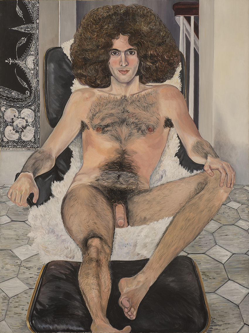 The ground floor is devoted to the work of Sylvia Sleigh. A Welsh painter who settled in New York in 1962, she produced the bulk of her oeuvre during the 1960s and 1970s, a period in which she interrogated the gendered conventions inherited from Western art history. Her approach is distinguished above all by an inversion of roles, substituting the male nude for the classical female nude, and by intimate portraits of the New York artistic and intellectual community captured in domestic settings. An engaged member of feminist collectives such as A.I.R. and SoHo 20, Sleigh structures the exhibition in five parts: a revisiting of art history icons (the odalisque, Orientalism, the Renaissance) through the lens of gender; a section dedicated to self-portraiture and the Sister Chapel project; a tribute to the New York scene of the 1970s; and finally, two spaces exploring the nude, highlighting how Sleigh privileged individuality, ornamentation, and the textures of the hippie counterculture.