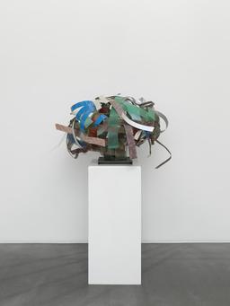 Riche d’une quinzaine de sculptures et installations, l’exposition de Dennis Oppenheim (1938-2011) offrait un complément à la présentation de ses œuvres dans les collections du musée. A la fin des années 1960, Oppenheim choisit de déployer son travail dans le paysage, puis, jusqu’en 1972, sur son propre corps. Quel que soit le lieu où il s’applique, le travail d’Oppenheim fait fond des idées de transformation et de processus. Dans les années 1980, il s’intéresse à la sculpture dans l’espace public. Il propose ainsi, en 1981, une œuvre à installer dans un parc genevois. Bien que le projet n’ait pas pu aboutir, l’exposition en montrait la maquette – un orgue à pétards infernal dont les courroies sont en papier de verre. Le monde des machines, de la technologie et de la logique industrielle, pouvait, pour Oppenheim, se comparer aux mécanismes de la pensée. C’est ainsi qu’on peut comprendre les entrelacs tubulaires de Long Distance Angen Rubben (1992) qui relient des formes anthropomorphes grâce à des pinces de batterie.