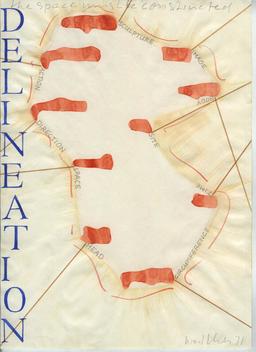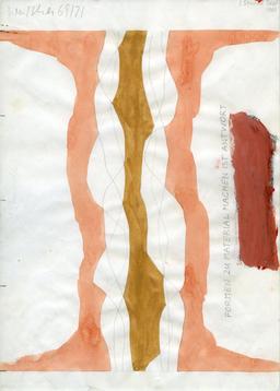 Fünf Nesselüberklebte Holzplatten. Unmassformen s’accroche au mur selon une amplitude variable. Si elle participe encore du domaine pictural à cause de son rapport à la cimaise, cette œuvre traversée par le vide en fait cependant le deuil au moins sur deux plans : celui de l’image, celui de l’intégralité du tableau dont ne nous sont proposés que des manques ou des fragments, des restes. Ce deuil pictural est aussi graphique, la pratique du dessin étant fondatrice chez Walther : les trois rubans de tissu qui tombent du mur et qui constituent Drei Bänder (1963), sont des lignes en dehors de la page qui intègrent dans leur identité la conversion matérielle de l’artiste, fondamentale pour lui. Et qui, tout comme les cinq panneaux muraux, incarnent un proto minimalisme.