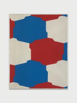 Dès 1967, l’artiste repense sa pratique, passant d’une logique automatique à une peinture systématique. Dans une société en pleine transformation, sa démarche s’oriente vers le protocole et restreint son motif à celui d’un hexagone bleu, rouge et blanc. Contemporain des artistes présentés dans l’exposition Systemic Painting (1966) de Lawrence Alloway au Guggenheim de New York, Ristori produit désormais une peinture conceptuelle et extensive.