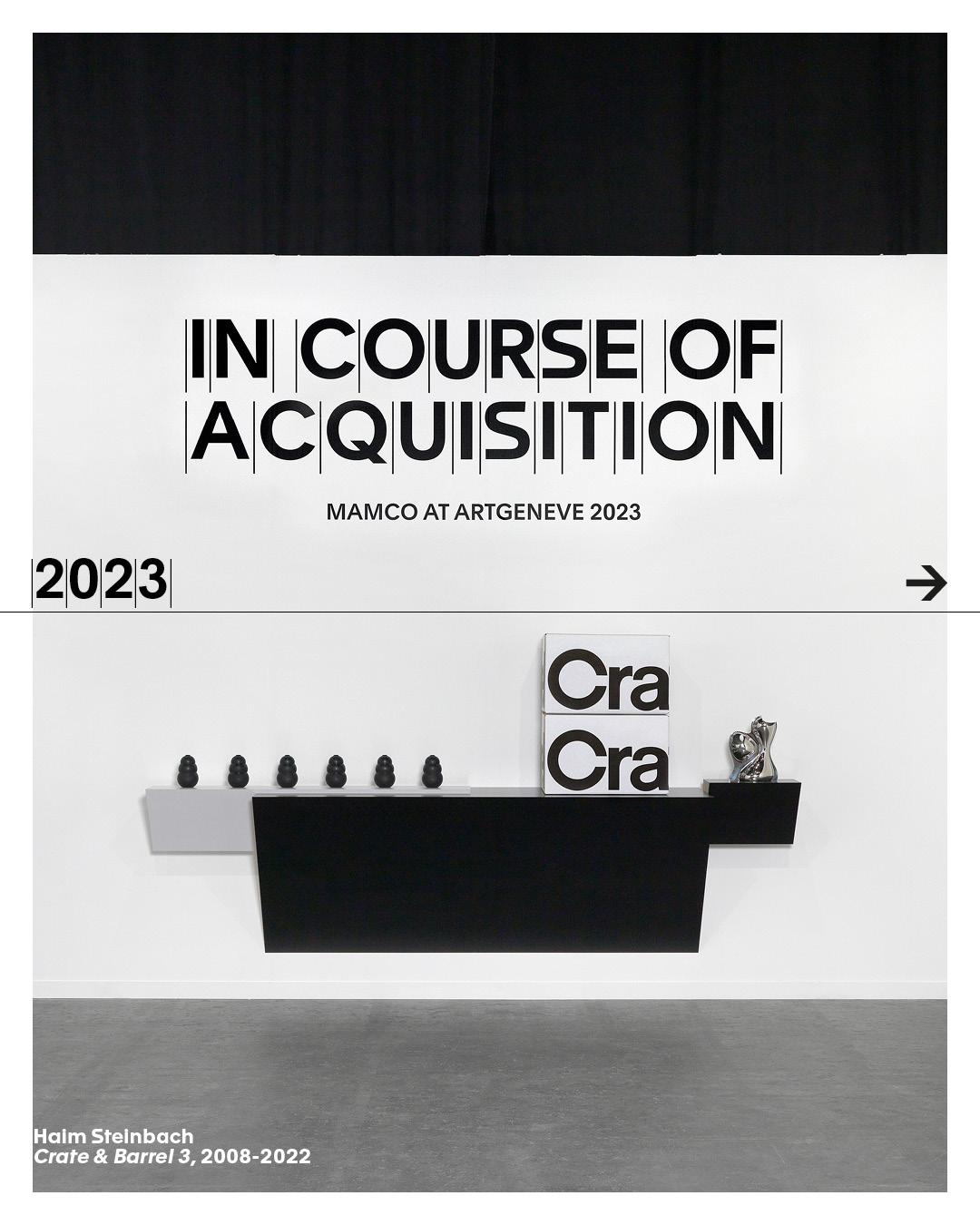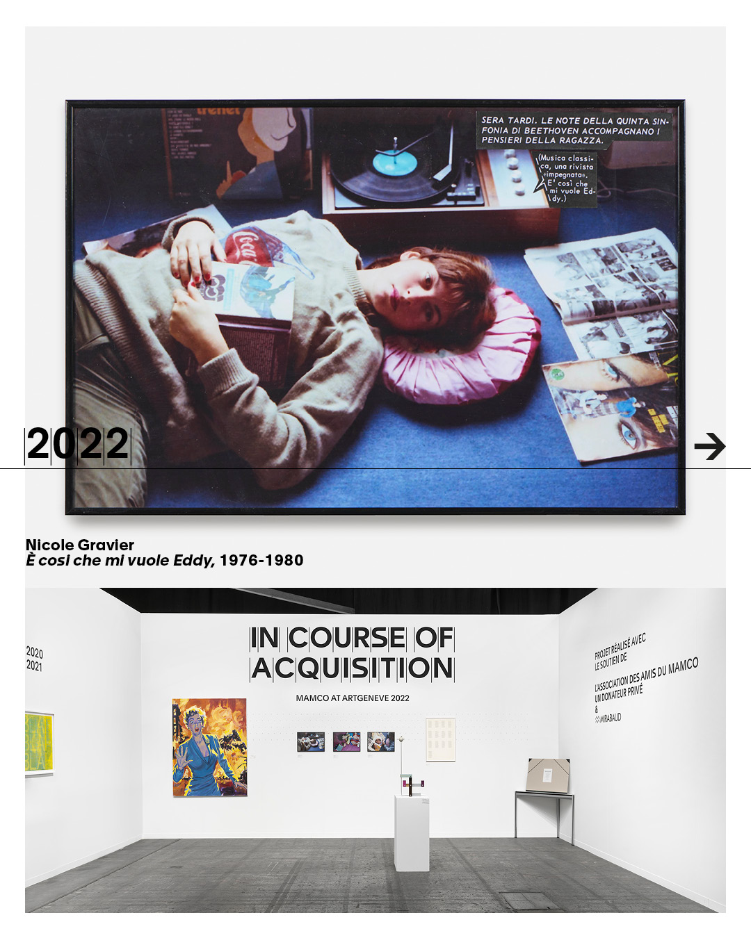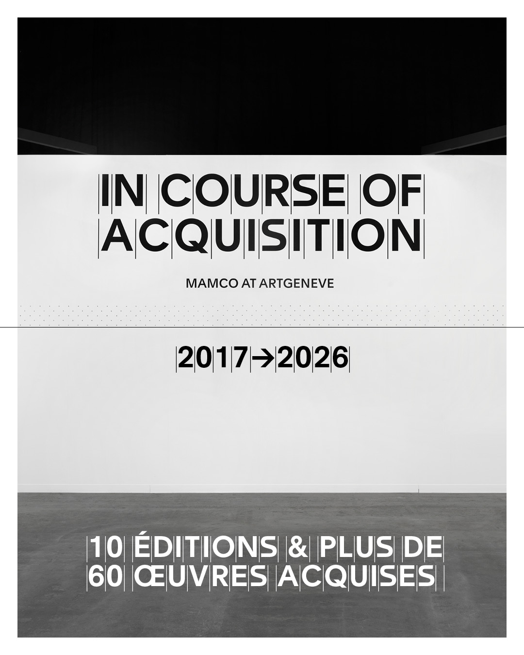 Avec In Course of Acquisition, le MAMCO affirme son rôle au sein de l’écosystème de l’art et de la scène locale, en tant que partenaire actif et spécifique des artistes, des galeries, des collectionneurs et du public. Le projet est rendu possible grâce au soutien de Mirabaud & Cie, de l’Association des Amis du MAMCO et d’un donateur anonyme.