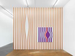 of the first section of the exhibition came parallel worlds and therapeutic travel. On every floor, Mondrian, Fontana, César, Buren, Vasarely, Andre were recycled and customized: one with faux fur, another with nail polish. Stepping from one floor to the next, visitors passed race cars smashed by She Devils on Wheels and lipstick-colored rockets, optical illusion wall paintings, and toys for huge dogs, nice friendly monsters dozing in the stifling air of hallucinogenic fumes. The exhibition followed a 1980s display strategy that created a blur of ideas and aesthetics, a space where fashion, advertising, design, and art all meld. The stairway served as the nerve center for the exhibition, as in a department store. The randomness of the spaces was tempered by the seriousness and