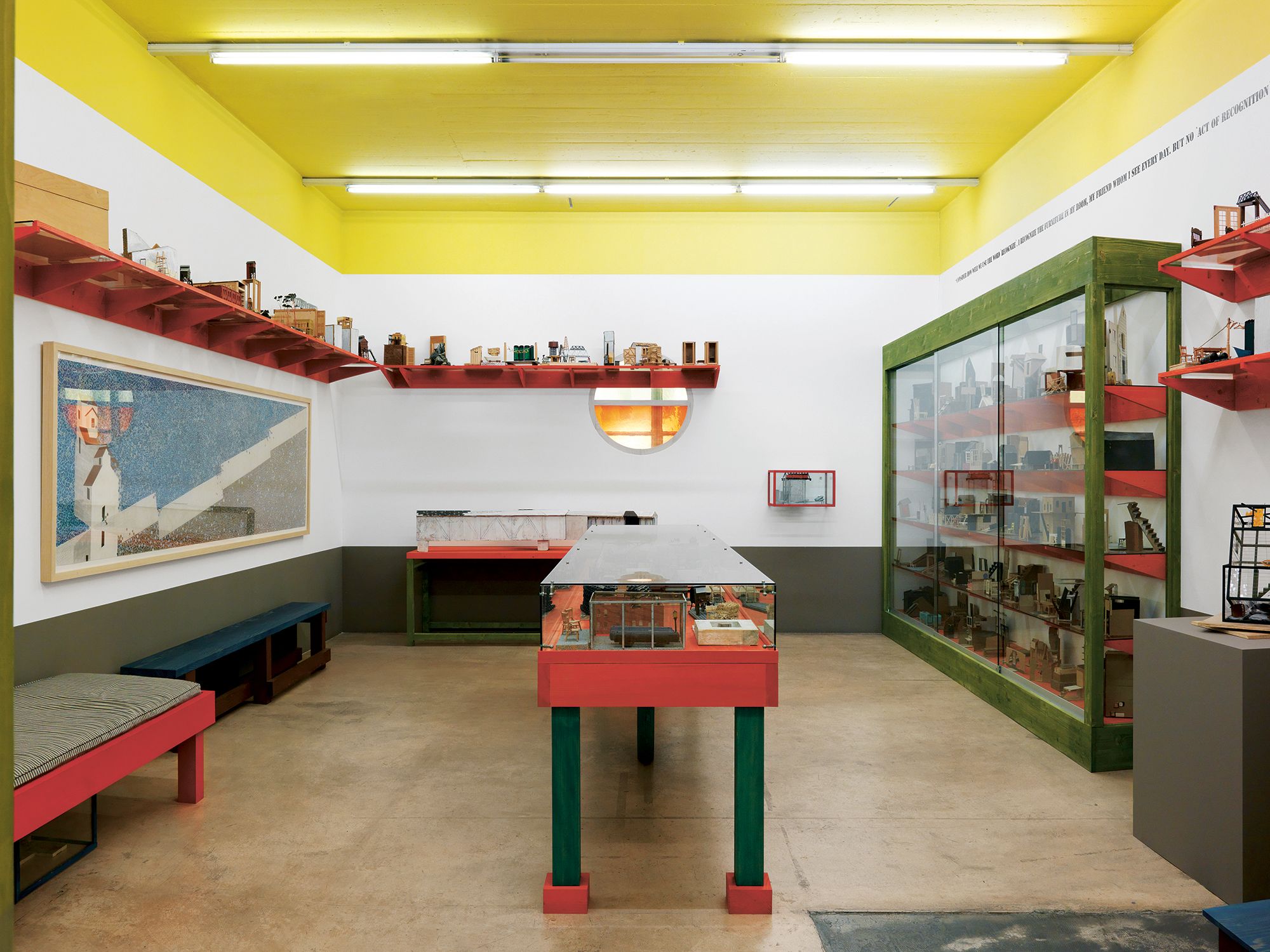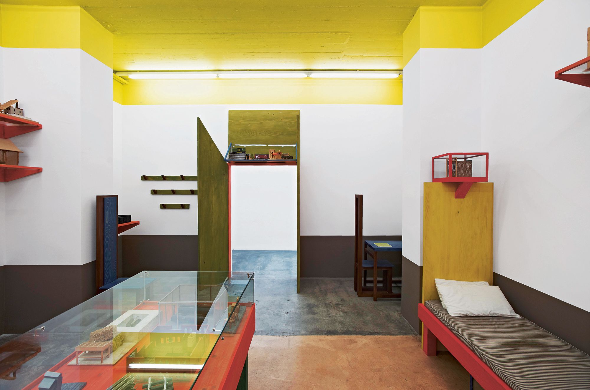 In 1967, Siah Armajani (1939, Teheran) became interested in the structures of the vernacular habitat and in the idea of working outside of art institutions. Since then, most of his work has been developed in public spaces, such as pedestrian walkways, reading rooms, poetry gardens, and kiosks. Rather than offering objects to be admired, his goal is always to offer functional structures, “useful” sites where the “viewers” become users. All of his art is addressed to the audience, rather than to the art discourse. It offers a pause to reflect during the daily flow of events. The Scheerbart Parlour is an exhibition setting resembling a furnished room designed by the artist to hold his works. The 52 Models for Streets (1992) produced by Armajani in 1995, and the 131 models of the Dictionary for Building (1974–1975) speak to a profound search for locations where we can find ourselves or stay in touch with ourselves, in forms inspired by the architecture of engineers or popular culture.