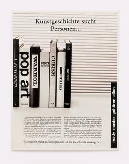 In December 1987, Philippe Thomas (1951–1995) opened his first agency in the Cable Gallery, New York, called readymades belong to everyone®. A French branch of this public relations agency soon followed in 1988 in Paris. The most immediate result was that the artist, as well as his name, disappeared as the author of the works, to be replaced by an impersonal title. The final exhibition of the agency took place at MAMCO in 1994, and the museum has preserved its components, i.e. the boxes and packing materials for the agency’s archives, as well as some of the images that punctuated its art career. Thomas died within months of opening the exhibition, and so the agency was definitively closed. By donating this work, he was bringing his undertaking to an end, both masterfully and modestly. His goal was for art to record the disappearance of the author.