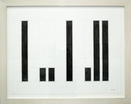 His works are part abstract, part “concrete objects”: their proportions evoke elementary forms and furniture, while some of his assemblages suggest sophisticated joinery or panelling. His seemingly abstract drawings incorporate a figurative dimension, reminiscent of architectural plans or ornamentation on a façade.