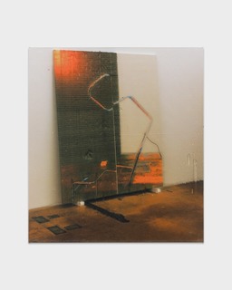 Repeated under different electronic formats, these signs—may they be Xs, Us, or even the image of a flame scanned from a book—have all become contemporary art icons. Though Guyton also produces sculptures, drawings, and installations, he chose this time to limit himself to the “painting” format. He is taking on a new chapter in his work with a series of clearly figurative pieces, alongside more abstract works, all created between 2015 and 2016. The central image of the exhibition, spanning various dimensions, is a photograph taken in his studio. In the foreground lying on the floor is one of his sculptures, a modified tubular framework from a Marcel Breuer chair. In the background, we make out the right side of one of his “Black paintings,” as well as the white wall on which it is resting. The series was completed with representations of the wooden floor in his New York studio, as well as close-ups of bitmap files.