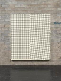 Although some of his works question the structure and language of painting, in the traditional sense of the word, they radically modify codes and modes of production. Guyton’s paintings are indeed realized by putting canvases several times through huge inkjet printers to print motifs and letterings. Errors, drips, and misprints are part of the general composition process and ensure the result’s unicity: “The first works I created digitally, it was like writing, but the keyboard replaced the pen. Instead of drawing an X, I decided to push a key.”