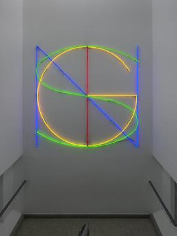Françoise Ninghetto, Curator at MAMCO, reflects on the museum’s inaugural exhibition in 1994, Le musée est dans l’escalier. She discusses one of MAMCO’s founding principles—conceived as a total work of art—and highlights three in situ works created specifically for the museum’s architecture at that time: Art, Text, Light, Sign by Maurizio Nannucci, Cercles concentriques via le rectangle Genève by Felice Varini, and Deux directions cruciales by Michel Verjux.