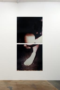 Villiger subsequently developed a profoundly personal, intimate practice focused on her own body. But unlike other Body art of the time, her close-up snapshots—of her own ear, the fold of an elbow, age spots on the skin, brawny fingers, and bony feet—were devoid of all violence or sexualization. Each image, a part of her body suspended in time, was captured for posterity on Polaroid film (an instant technique that cuts out the lengthy development process) and glued to a thin aluminum plate. Her early works were small in size and organized in series, as if Villiger were keeping a personal diary. She went on to produce much larger pieces, which she presented individually (Skulptural) or in deliberately arranged compositions (Block XXXVIII, 1994–1995).