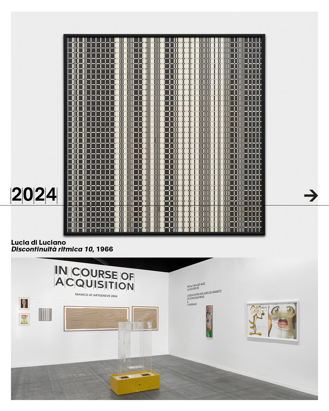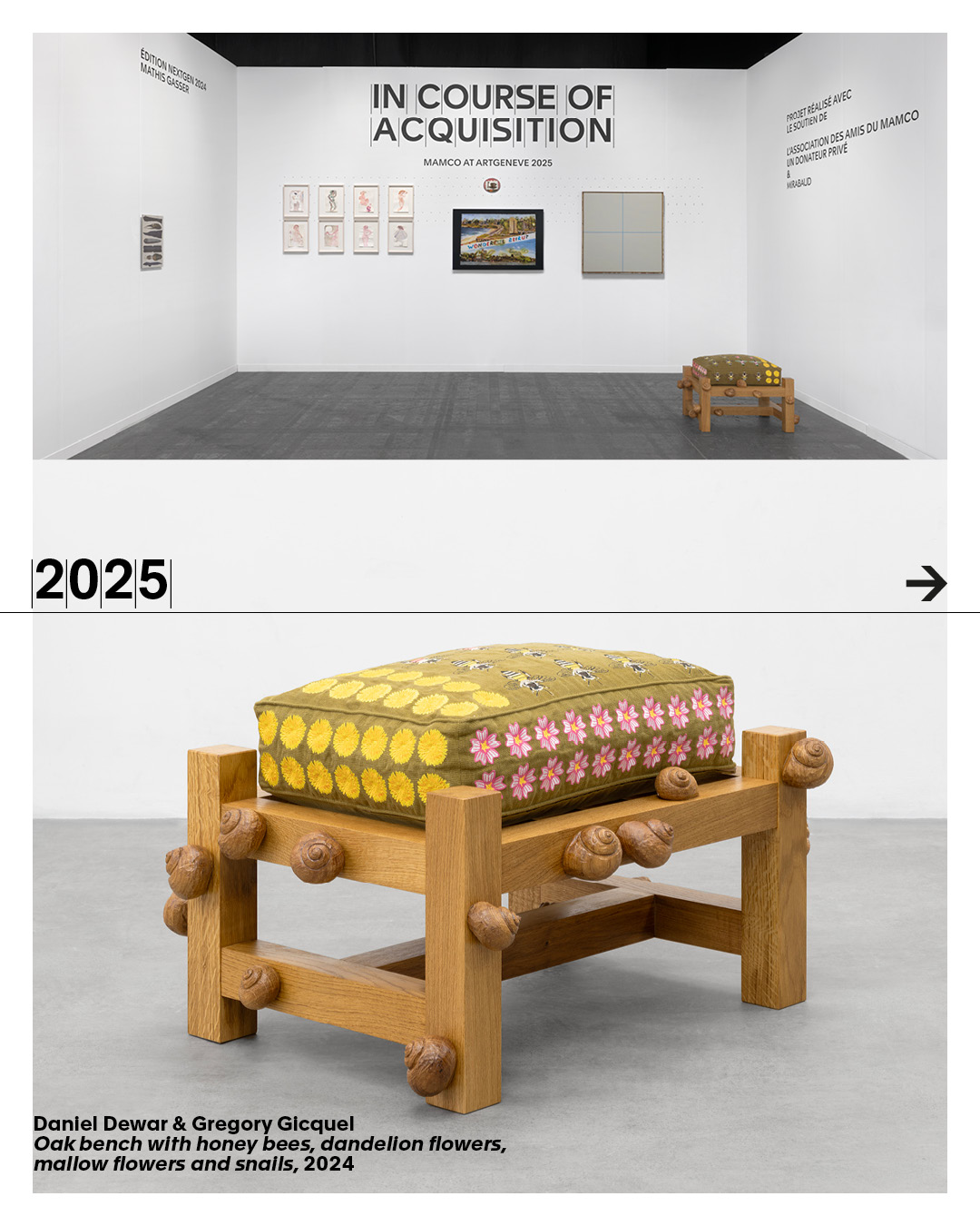 The MAMCO Geneva celebrates the tenth anniversary of In Course of Acquisition at Art Genève. Through this project, the museum carries out in situ acquisitions over the five days of the fair, enriching its collection while making visible a process that usually remains discreet at the heart of art fairs. Since its launch, In Course of Acquisition has enabled the acquisition of around sixty works between 2017 and 2026.