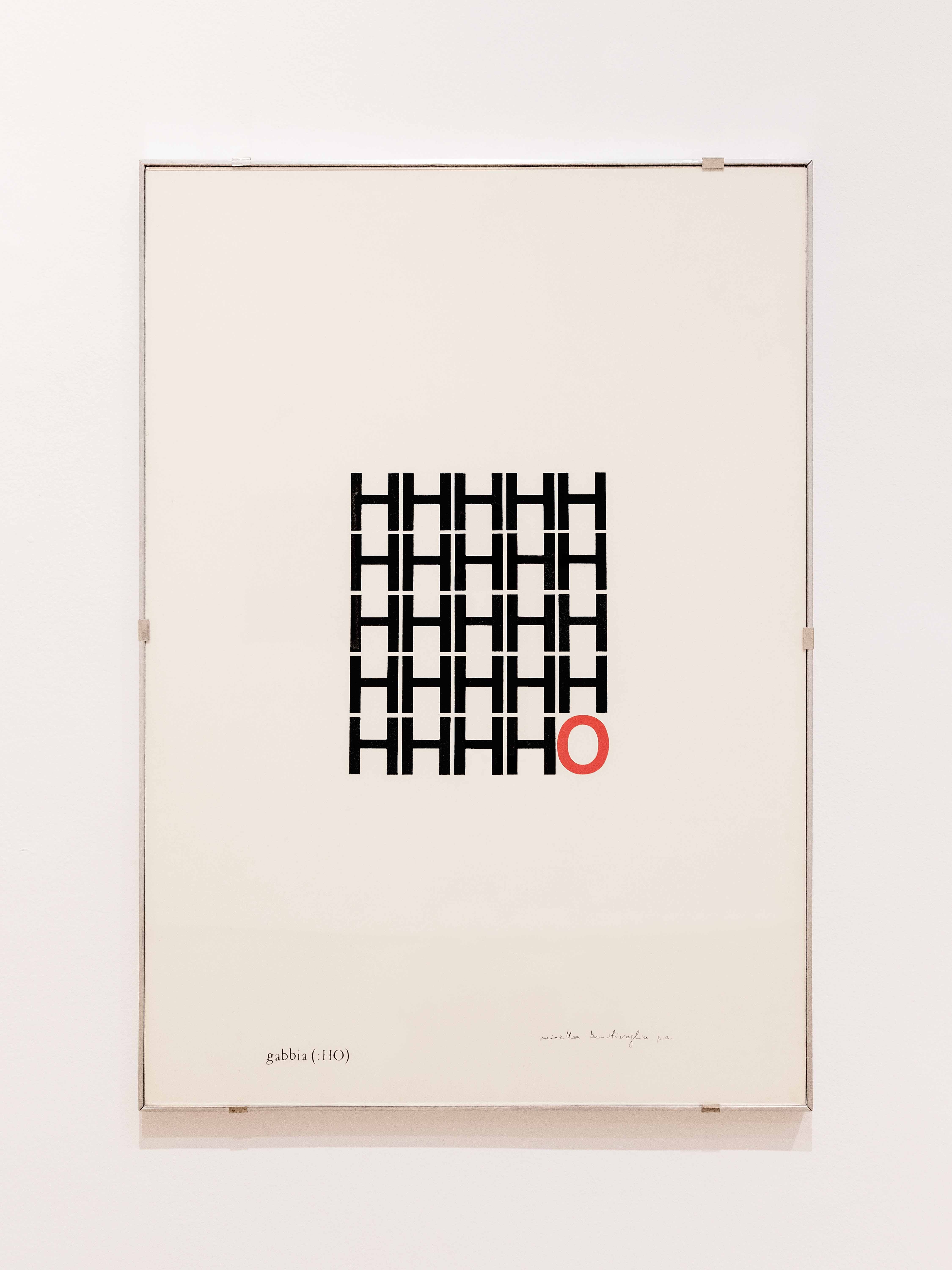 The MAMCO’s Concrete Poetry Cabinet, part of the collection since 2017, forms the starting point for this exhibition organized in collaboration with the Kunsthaus Biel Centre d’art Bienne (KBCB). Centered on the figure of Mirella Bentivoglio (1922–2017), the project highlights the decisive role of this artist, author, collector, and curator in the rise of a critical and communal visual poetry. As early as the 1970s, she was among the first to organize collective exhibitions exclusively featuring women artists, notably Materializzazione del Linguaggio, presented on the sidelines of the 1978 Venice Biennale. A true manifesto for the feminization of language and the reappropriation of its codes, this event was deeply rooted in the highly politicized context of feminist Italy at the time.