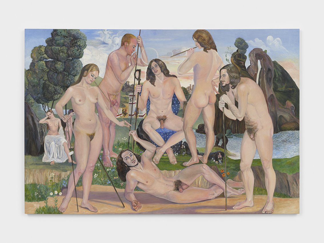 The ground floor is devoted to the work of Sylvia Sleigh. A Welsh painter who settled in New York in 1962, she produced the bulk of her oeuvre during the 1960s and 1970s, a period in which she interrogated the gendered conventions inherited from Western art history. Her approach is distinguished above all by an inversion of roles, substituting the male nude for the classical female nude, and by intimate portraits of the New York artistic and intellectual community captured in domestic settings. An engaged member of feminist collectives such as A.I.R. and SoHo 20, Sleigh structures the exhibition in five parts: a revisiting of art history icons (the odalisque, Orientalism, the Renaissance) through the lens of gender; a section dedicated to self-portraiture and the Sister Chapel project; a tribute to the New York scene of the 1970s; and finally, two spaces exploring the nude, highlighting how Sleigh privileged individuality, ornamentation, and the textures of the hippie counterculture.