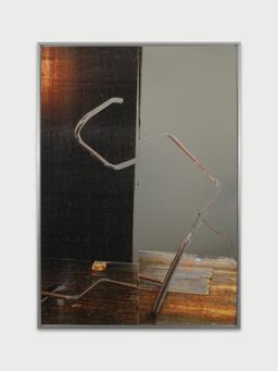 Wade Guyton produit également des sculptures, des dessins et des installations, mais il a choisi pour ce projet de se restreindre au format « peinture ». Car, il aborde ici, avec cet ensemble de pièces conçues entre 2015 et 2016, un nouveau chapitre de sa démarche. L’image centrale de l’exposition, déclinée sous divers formats, est une photographie que l’artiste a réalisée dans son atelier : au premier plan, se dresse l’une de ses sculptures, l’armature tubulaire d’une chaise de Marcel Breuer modifiée et posée à même le sol ; à l’arrière-plan, on aperçoit la partie droite d’une des peintures de la série des « Black Paintings », ainsi que le mur sur lequel l’œuvre est adossée. « Pour comprendre mon travail autrement, j’ai commencé à le photographier dans l’atelier et à produire des peintures à partir de ces images. C’est parfaitement logique d’utiliser une image photographique avec les outils dont je me sers. Mes imprimantes ont été conçues pour remplacer la photographie qu’on développait en chambre noire… une sorte d’opération commerciale hostile déguisée en progrès technologique et en amélioration de l’image. »