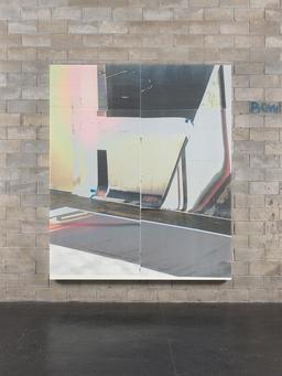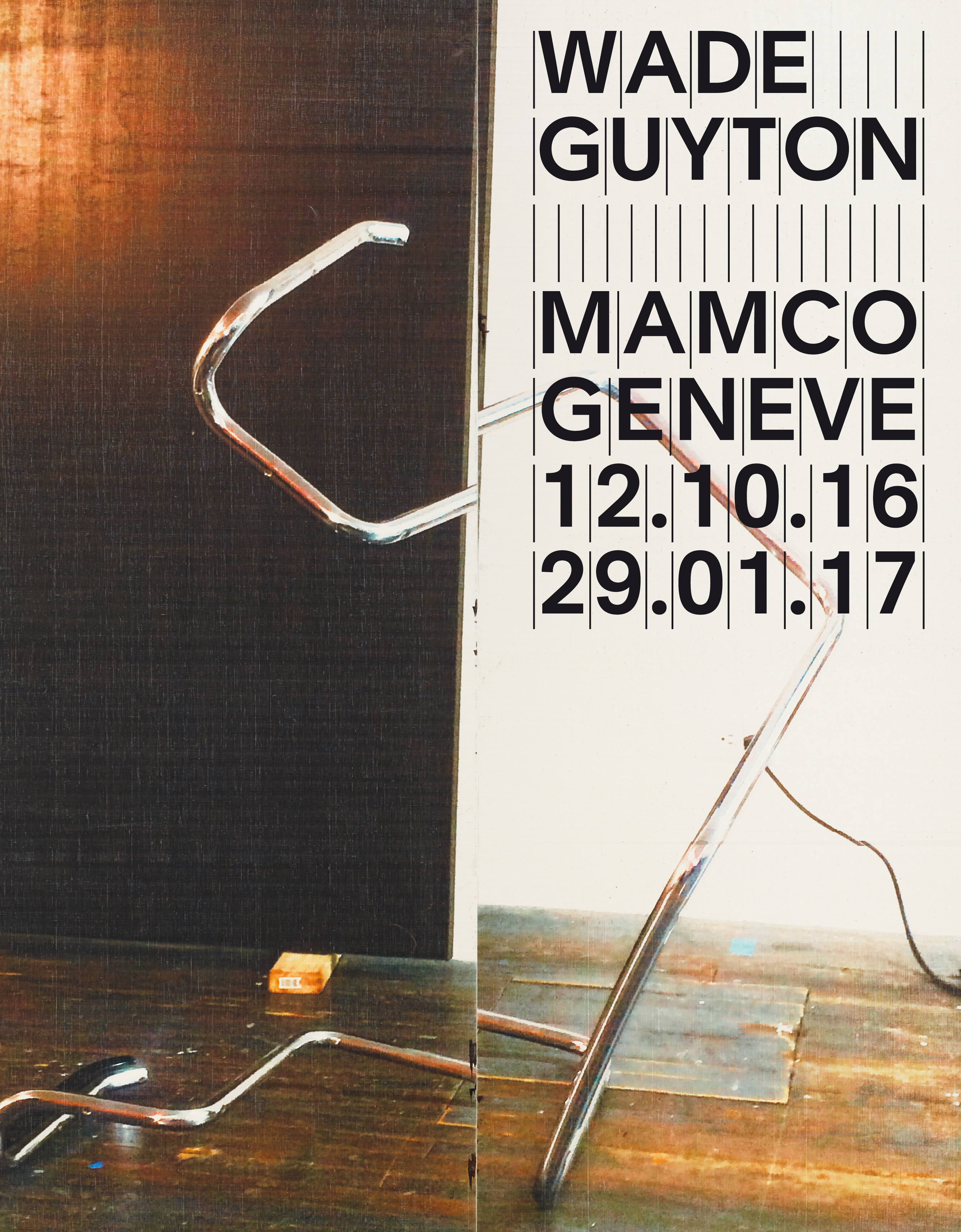 Wade Guyton produit également des sculptures, des dessins et des installations, mais il a choisi pour ce projet de se restreindre au format « peinture ». Car, il aborde ici, avec cet ensemble de pièces conçues entre 2015 et 2016, un nouveau chapitre de sa démarche. L’image centrale de l’exposition, déclinée sous divers formats, est une photographie que l’artiste a réalisée dans son atelier : au premier plan, se dresse l’une de ses sculptures, l’armature tubulaire d’une chaise de Marcel Breuer modifiée et posée à même le sol ; à l’arrière-plan, on aperçoit la partie droite d’une des peintures de la série des « Black Paintings », ainsi que le mur sur lequel l’œuvre est adossée. « Pour comprendre mon travail autrement, j’ai commencé à le photographier dans l’atelier et à produire des peintures à partir de ces images. C’est parfaitement logique d’utiliser une image photographique avec les outils dont je me sers. Mes imprimantes ont été conçues pour remplacer la photographie qu’on développait en chambre noire… une sorte d’opération commerciale hostile déguisée en progrès technologique et en amélioration de l’image. »