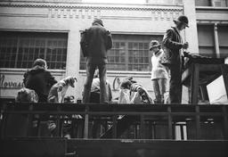 Au cours de l’automne 1972, Gordon Matta-Clark (1943-1978) construit, dans un container, Dumpster Duplex, seconde itération d’Open House – dont la reconstitution fait partie de la collection du MAMCO. Une photographie montre que le container est déposé devant le 112 Greene Street, l’un des mythiques espaces d’exposition alternatif de SoHo. L’aménagement intérieur du container diffère essentiellement de la première version parce qu’il est doté d’un étage : un escalier permet d’accéder à une plateforme sur laquelle a été fixé un brasero qui fait office de barbecue, comme le montrent des photographies d’Andy Grunberg présentées ici.
