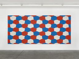 Dès 1967, l’artiste repense sa pratique, passant d’une logique automatique à une peinture systématique. Dans une société en pleine transformation, sa démarche s’oriente vers le protocole et restreint son motif à celui d’un hexagone bleu, rouge et blanc. Contemporain des artistes présentés dans l’exposition Systemic Painting (1966) de Lawrence Alloway au Guggenheim de New York, Ristori produit désormais une peinture conceptuelle et extensive.